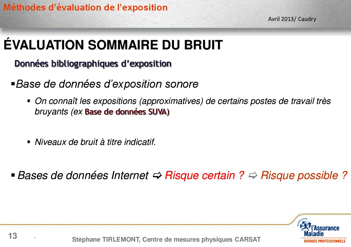 Evaluation du risque bruit