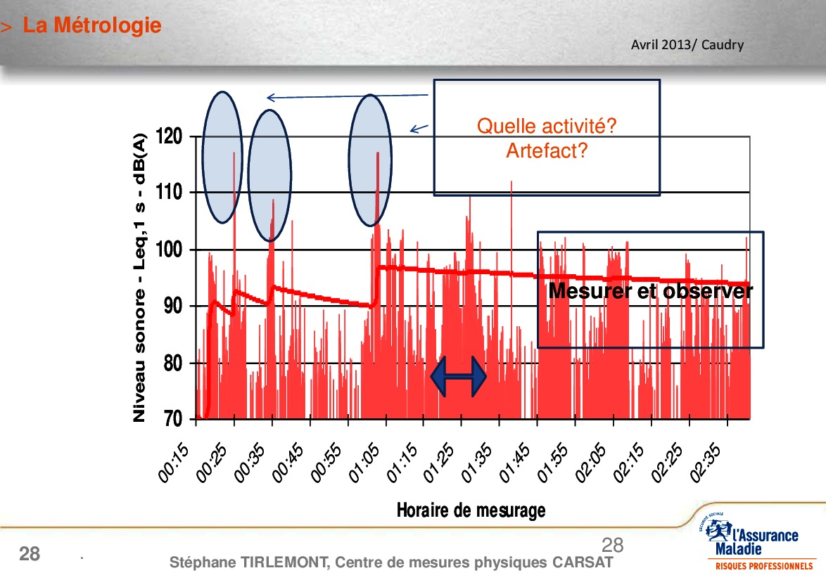 Dispositions réglementaires ; méthodes d’évaluation : estimation sommaire (sans mesurage), estimation simplifiée, mesurage normalisé ; métrologie (mesure sonométrique, mesure dosimétrique). Observation de quelques exposimétries.